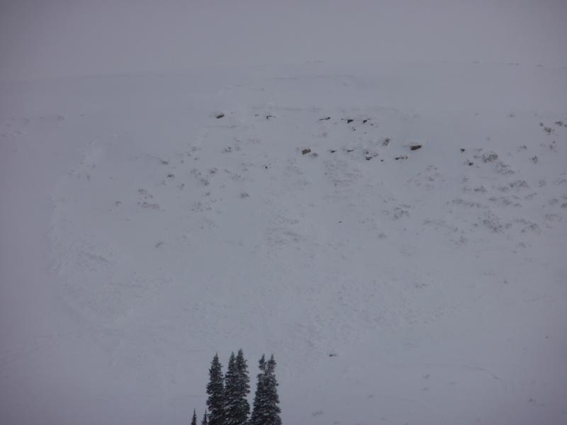 We did a profile in this slide path two weeks ago - There was a hard slab over facets - Looks to have been caused by new snow/wind overloading existing snow - the slope was a rocky area with a shallow snow pack. Along this ridge there were 2 other slides same characteristics. New snow 15 cm at Millers Flat.
