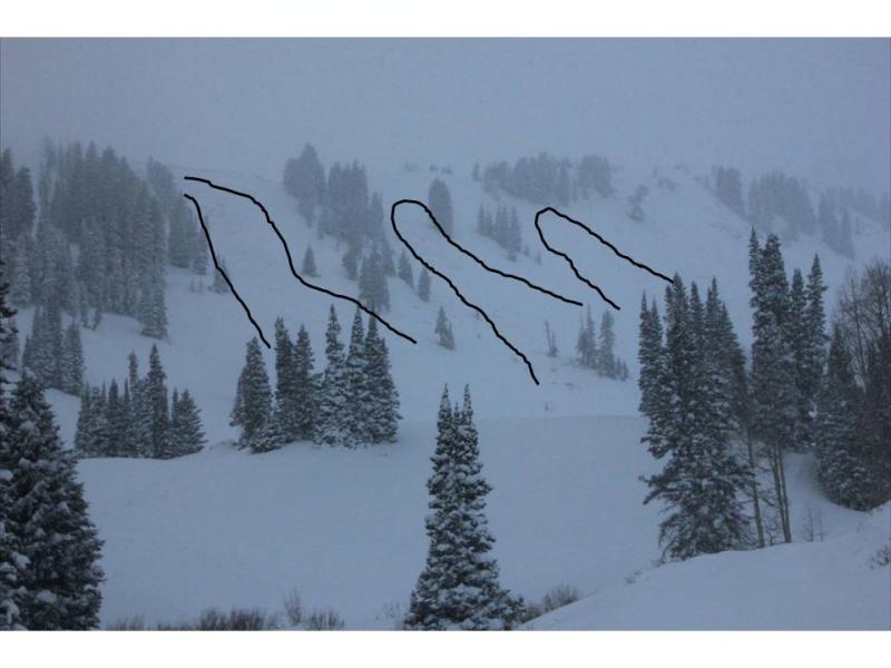 Great obs from Johnny A. Slide occurred midday as winds began to nuke. Light was super flat... I outlined the slide crown and flanks.
