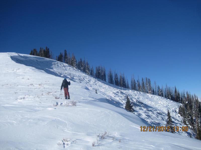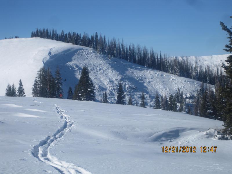 Group of sledders remotely triggered this large hard slab from flat terrain hundreds of feet away. Super sketchy snpowpack on the Skyline.