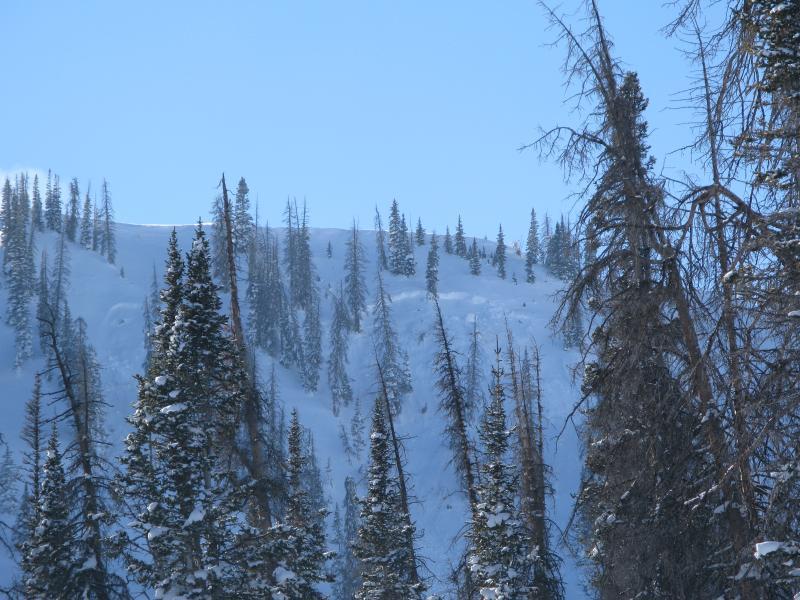This is the same avalanche that Steve and Darce observed on December 26. Better light today. Impressive avalanche.