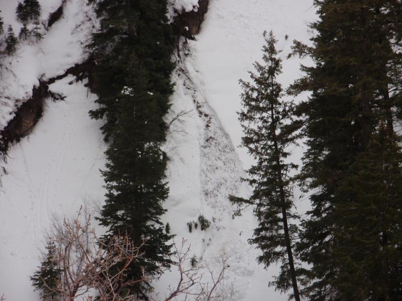 There were three wet slides at about 7000 feet, these were very small point wet snow avalanches. The slides were on the same aspect and area, the lower Fairview canyon. These slides are in an area in which access is difficult and little hazard to the public. All three slides were approximately the same size
