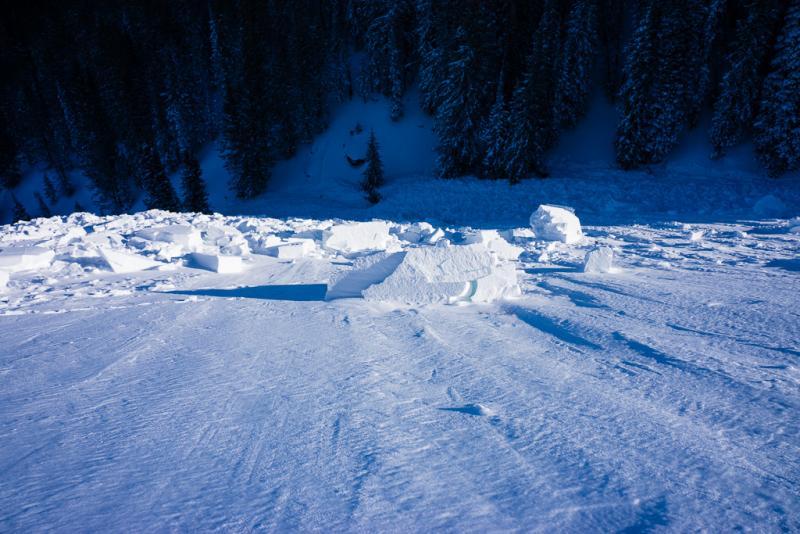 The avalanche was a very hard and thick slab formed from wind-deposited snow. The weak layer was a layer of faceted snow that formed in the first half of January. A period of heavy snowfall occurred during the last couple weeks of January capped off by strong winds from the northwest for the 2-3 days previous to the accident.