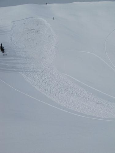This was number three of three snowmobiler triggered avalanches that I stumbled across in Seeley Canyon. I'm guessing that they were all triggered by the same group as there were not many tracks in the drainage. I was a bit surprised to see that they broke into older faceted snow. However, upon inspection, it makes sense at these locations. The upper bowls along the Skyline receive a good amount of wind damage. This sometimes erodes snow leaving a very shallow snowpack that is easily subject to faceting. No doubt, that was the case. All of these avalanches were in areas where there was only about a foot of old snow which was quite faceted. Many areas had over 3 feet of snow prior to this storm and have a much better structure.
