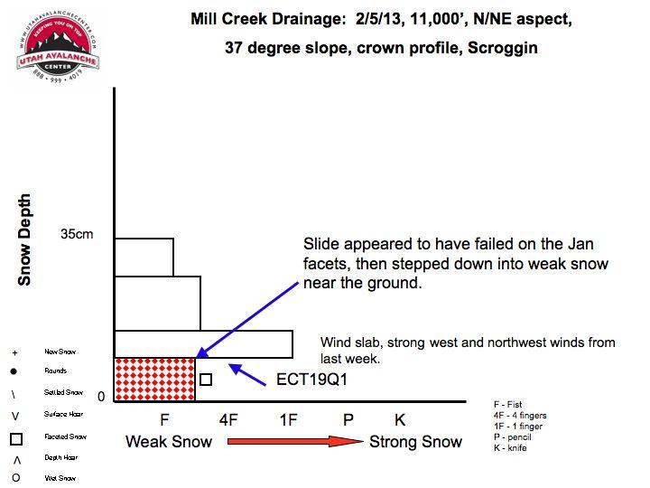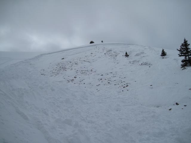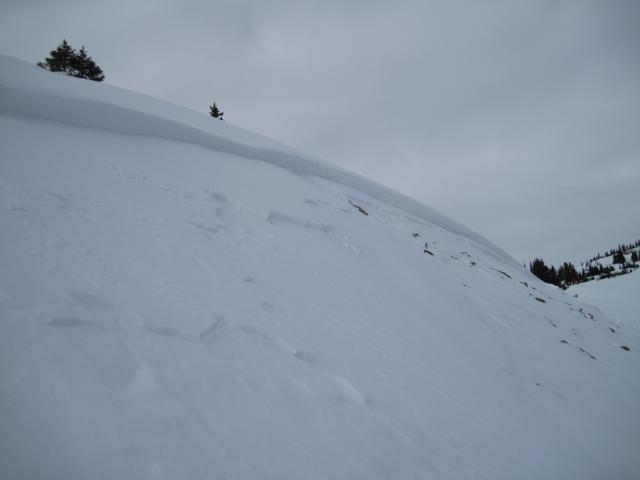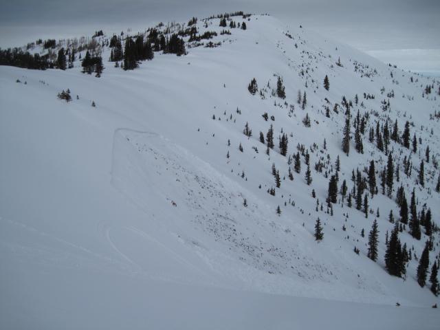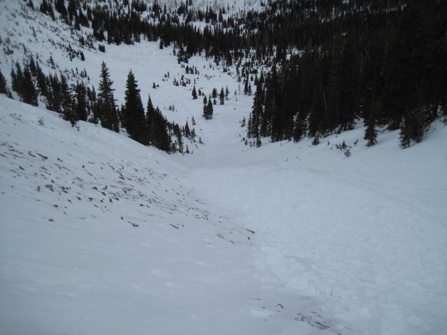 The slide looks to have failed on the early January facets, then stepped down into weaker snow near the ground. This side of the range typically has a shallow snow pack and much weaker snow than terrain further to the west of the trailhead.