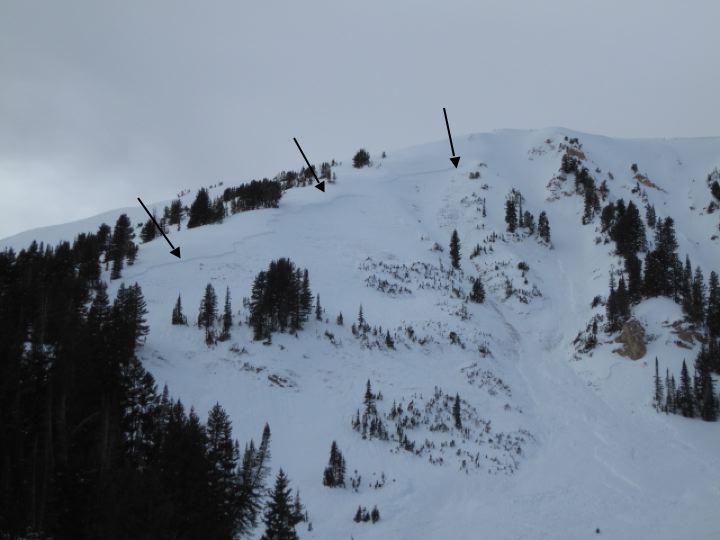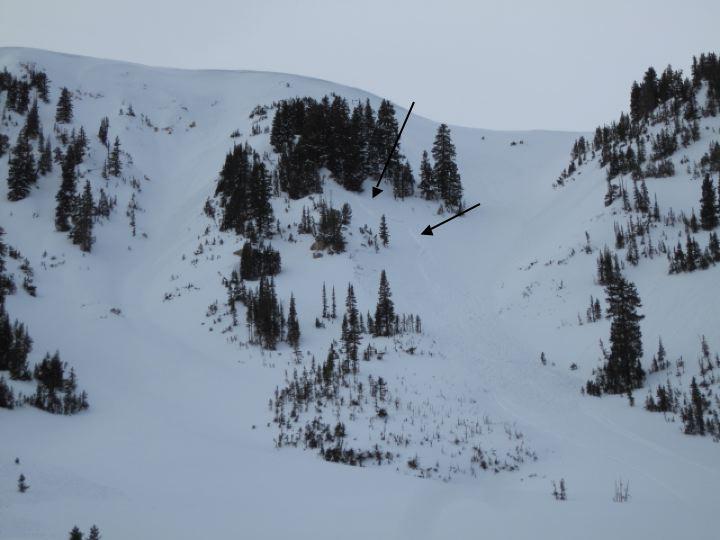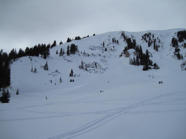 A small pocket also on the east side of Moffit Peak. There are some sled tracks below the slide, but not sure if they triggered the slide?