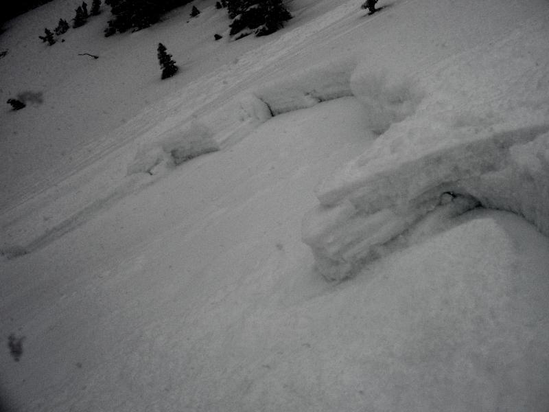 I just got done digging a pit near the top of the slope. My results were ECT 27 BRK and CT 11 RP above the January facets. The January facets were down 30 cm in an HS 130 snow pack. I had previously ski cut and skied an adjacent line to the slide. I felt the slope was safe to ski so I skied it. I was unaware the slide occurred until I was at the bottom. 3/4 the way down the slope there is a flat spot with very thin snow over rocks. I wonder if when getting off the deep part of the slab and crossing the thinnest part of the slab I triggered the slide and it pulled up the slope.