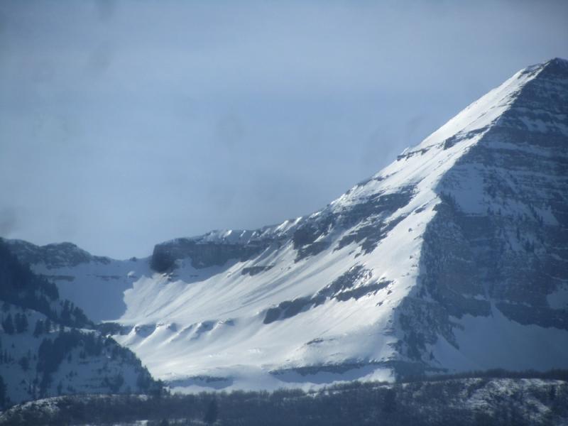 This slide on the sunny side of the Big Provo Cirque occurred around 13:00. The temp at this time a couple miles to the south on Cascade Peak at a similar elevation was 35F. Similar slides to this happened today on aspects E-SW in Roberts Horn, the SE and E Chutes of Elk Point, and on the west side of Timpanogos. Not a huge WL cycle considering the rapid warming but still notable.