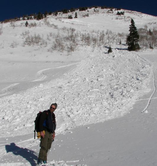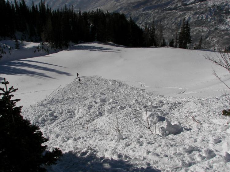 Looking back up the avalanche from the toe. The party chose to stick to lower angled terrain on the remainder of their descent....