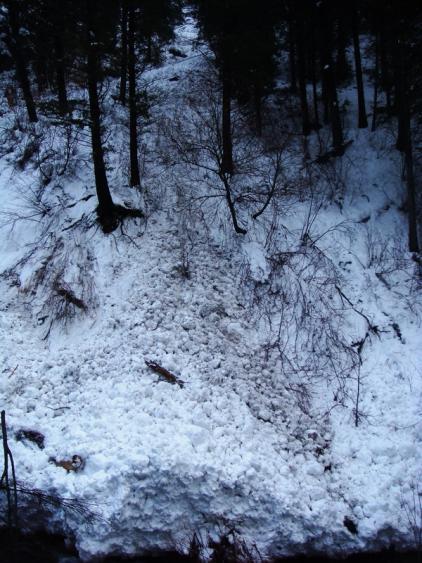 Another sizable slide in AF further up the road near Tibble Fork Reservoir. This is the Tibble Towers Chute and it ran 1000' taking out some small trees and branches before ending in the creek.