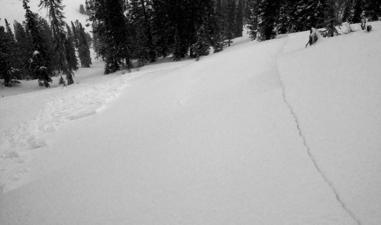 "I then traversed into Cold Canyon basin, avoiding the steepest sections. At one point, there was a small wind-loaded area, an