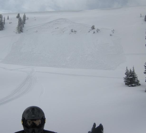 This snowmobile triggered slide in Super Bowl broke on weak, sugary snow near the ground.
