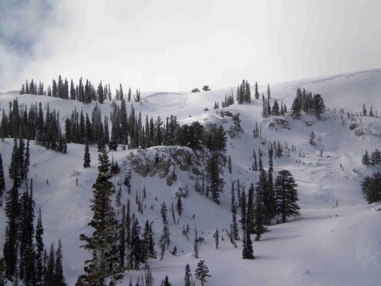 Rodeo Ridge Partly sunny NW winds. 30+ slides of varying sizes. Slide activity from the valley floor to the ridge where you can look into Ogden. Naturals which triggered other naturals. Debris running down gullies and pulling out the side walls in multiple spots. 8-24 inch crowns. These were failing on the rime crust which was buried by 6-8 inches of new snow and then this would fail on the surface hoar which was buried by the last storm cycle. Ski cuts easily pulled out. Continuous cracking and collapsing along the whole skin track from the bottom of Test hill to the top of Rodeo Ridge. Shooting cracks on anything over 30 degrees. CT3 on rime crust 28 degree slope. ECT 12- 14 on buried surface hoar. Some transport but heard there was more on Cutler Ridge. Graupel on top. Lighter snow underneath. Skiing was punchy. Two layers were problematic. 1- rime crust 4-8 inches down. 2- buried surface 12-24 inches down. I think it will stay weak for a while. Maybe some warm temps would destroy these layers. Pucker factor- ski down near the skin track.