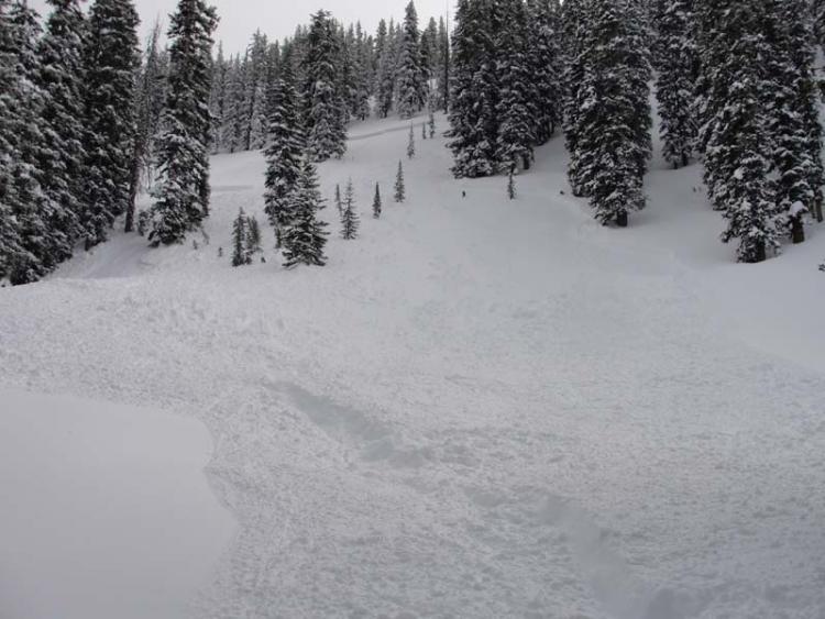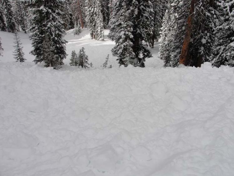 A first hand account- "A second later the snow from above my stauchwall sighting was pushing me right down the fall line as usual, but there were trees in front of me so I tried to aim my skis just to the right of the trees in front of me. I was eventually off balance and fell on my right side, hoping I would not clip the trees. I didn't--this was good, so my next goal was to try and tuck my skis under/in front of me. I knew there were more trees in front of me, but by this point I was going under. Snow started to slow and my head was under the moving snow. I pulled my left hand up in front of my face, just as the slide stopped. I could not breathe. I clawed w/ my left hand towards the surface, and even though I still was aspirating snow, once my hand reached the surface I told myself I would survive.