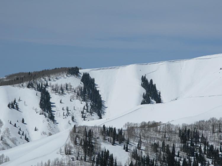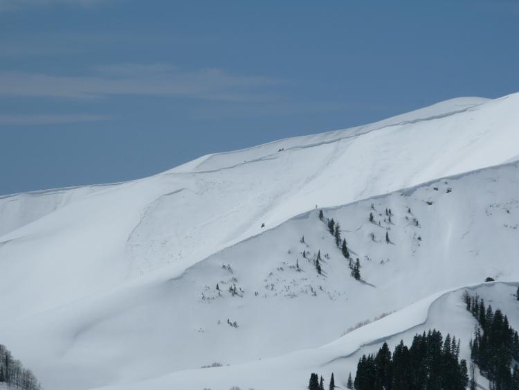 This slide consists of two large pockets. The slide to the lookers left pulled out into low angle terrain in a fairly dense stand of trees.