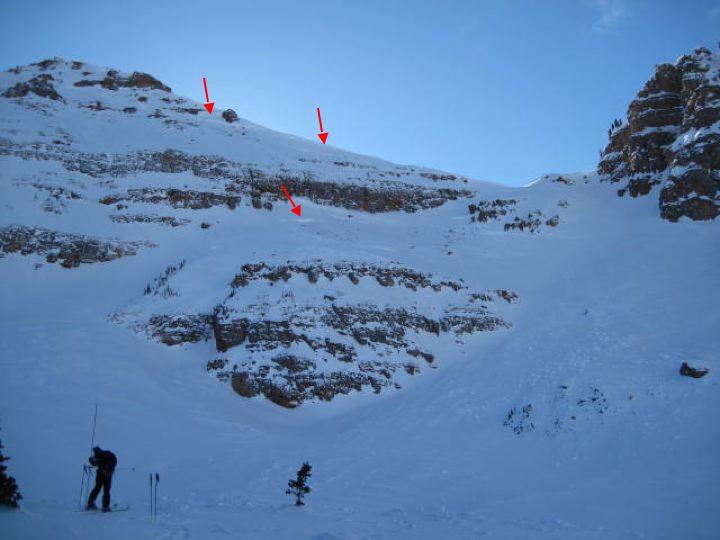 This large slide possibly occurred over the weekend with strong winds overloading thin weak snow. The debris pile spilled-out well onto the flat terrain and to the edge of the trees.