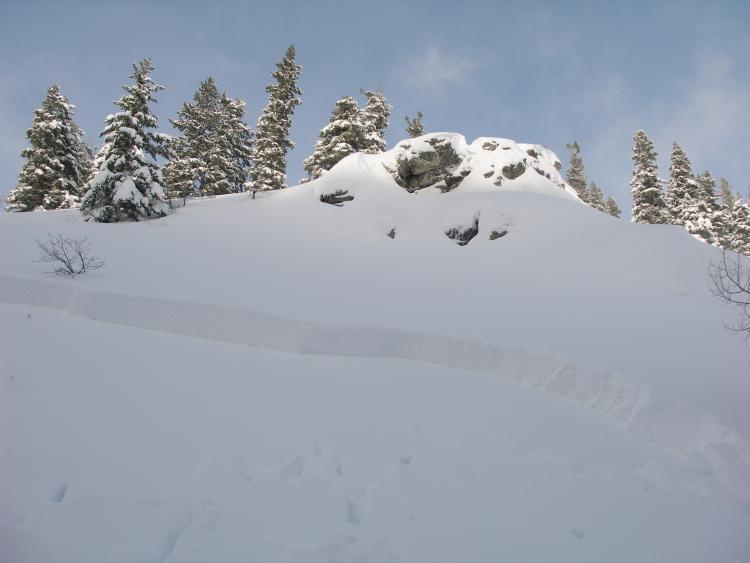 Farmington Canyon road, avalanche onto road apparently caused by snowplow undercutting the slope.