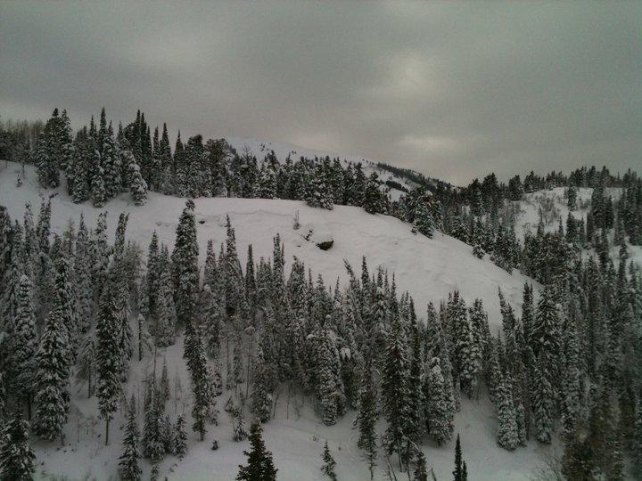 Noticed this slide today while hiking along the upper francis peak road. New years day I noticed some debri in the trees just below this slide, but it was until today I hiked into an area I could view the slide. Looks to be from either newyears eve or possibly the day before, There are skier tracks coming in from the skiers right of the slide, Possibly triggered the slide. There are also what appeared to be snowshoe tracks heading up the slide path from earlier today. I skiied a few runs on the south southwest aspects just across from this slide, Snow felt very stable, and was still really good snow, besides a little sun crust near the snow removal shack. Overall a really good day. Ran into some other riders who had riden a northerly aspect just west of this slide area, reported it to be "sketchy" they road the ridge line down and headed to the south southwest aspects I would later run into them on.