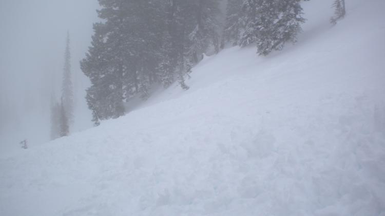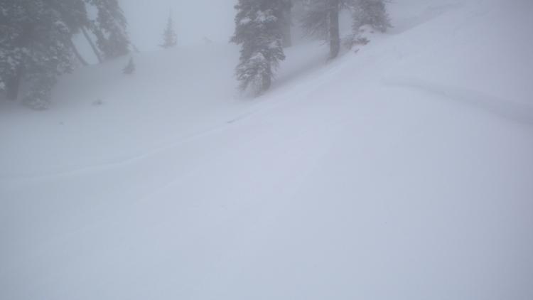Skied first run from main ridge on a east aspect. Some pockets of surface hoar 4-6" deep which didn't fail. This slope had wind damaged surface hoar last weekend. Dense fog moved in for second run. Poor visibility led to an alteration of our intended route down a generally safe sub ridge onto a steeper slope which was a protected NNE aspect. The first skier ski cut our alternate route without failure and skied to a relative island of safety. The second skier then entered the slope which fractured at his feet (6-16" deep crown) and ran downslope just catching the first skier knocking him off his feet, but not carrying him. Voice contact was made with all 3 skiers and the third skier entered the slope to the right of the second skier releasing another slide of similar depth which ran past the first skier who had moved to a safer position.