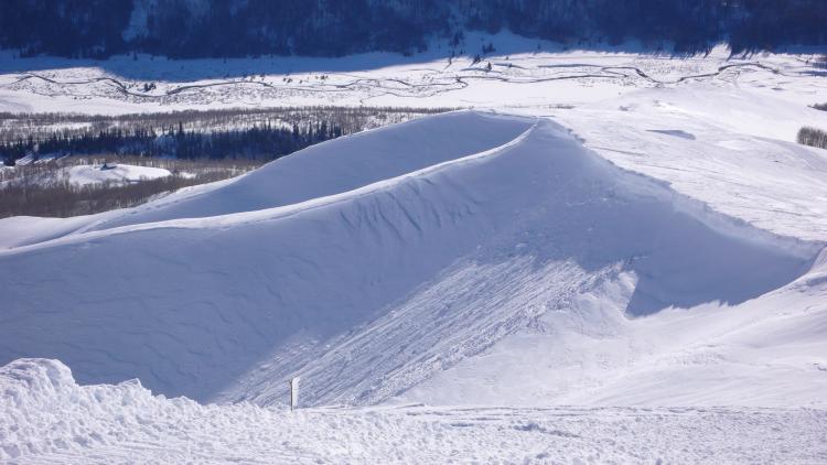 Size 2, 500' x 600' x 1' Terminus: Top of Runout. Super Bowl area, just below Windy Peak.