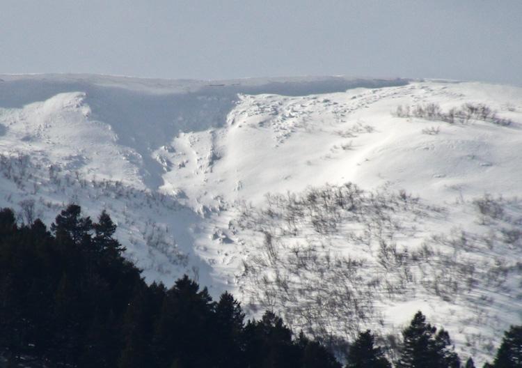 Observed from the road. Area is just south of North Ogden Divide. Looked like a natural cornice fall triggered a slab below, or possibly just gouged out the snow below. Not sure when this occured. Could not see toe of debris.