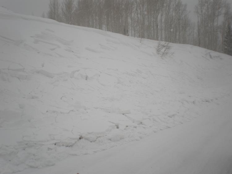Good indication of what's out there! Tough to see in the photo but this is the roadcut below the Burnoff Ridge. Skier triggered on Saturday afternoon. About 150 feet wide and up to 2.5 deep hard slab.