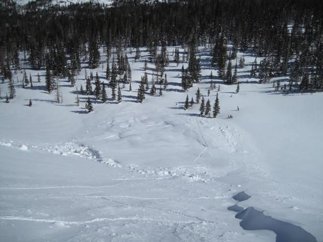 The avalanche quickly ran out-of slope angle, but could have been a nasty one to get caught up in.