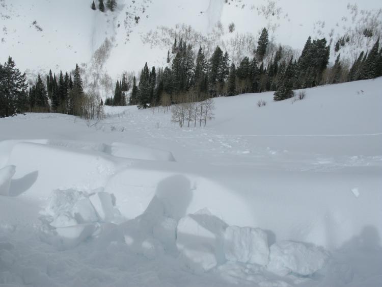 Looking from the crown to the toe, this avalanche could have had a really bad ending. Unlike other Springs when the pack gets deep it usually becomes more stable, our tricky snowpack isn't turning a corner towards stability. If anything it's becoming spookier as the surface snow settles into a strong cohesive slab.