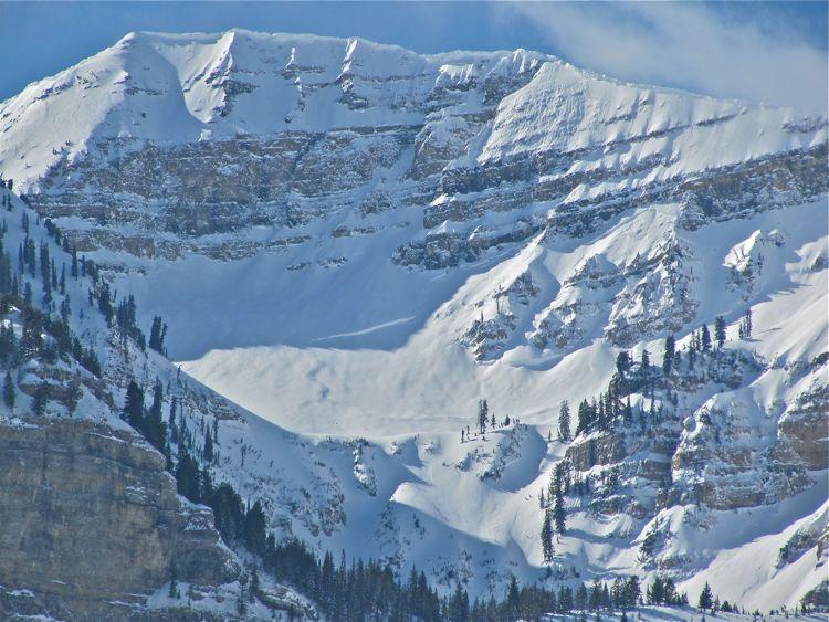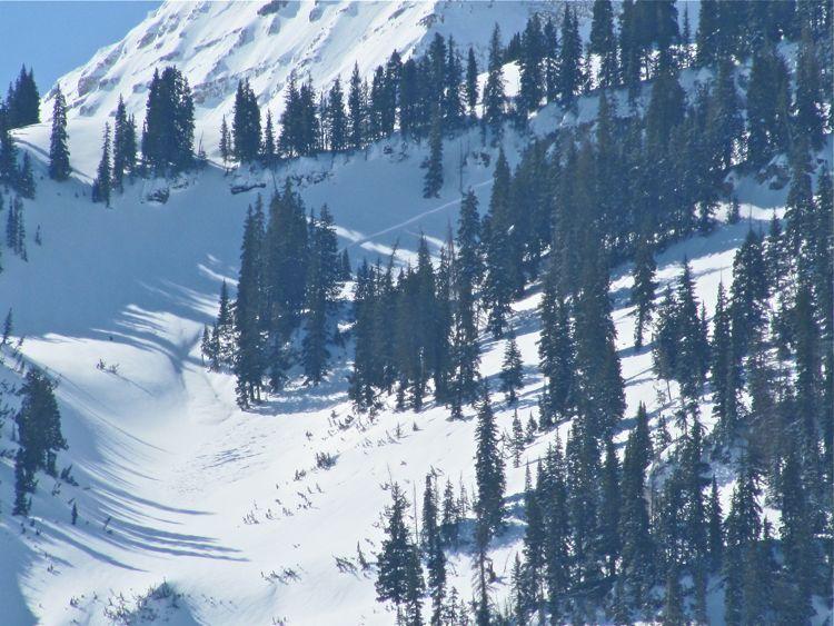 A natural avalanche cycle occurred on Timpanogos during the storm on March 7th. This was a deep slab release that I observed. It was the only deep slab that I saw but Nalli stated he observed more to the east side of Timpanogos. I did not climb to look at the crown but in areas I did travel I found a layer of weak faceted snow above the January rain crust. It's most likely that this deep slab had a weak layer above or below the January rain crust. The location of this avalanche is indicated on the map below.