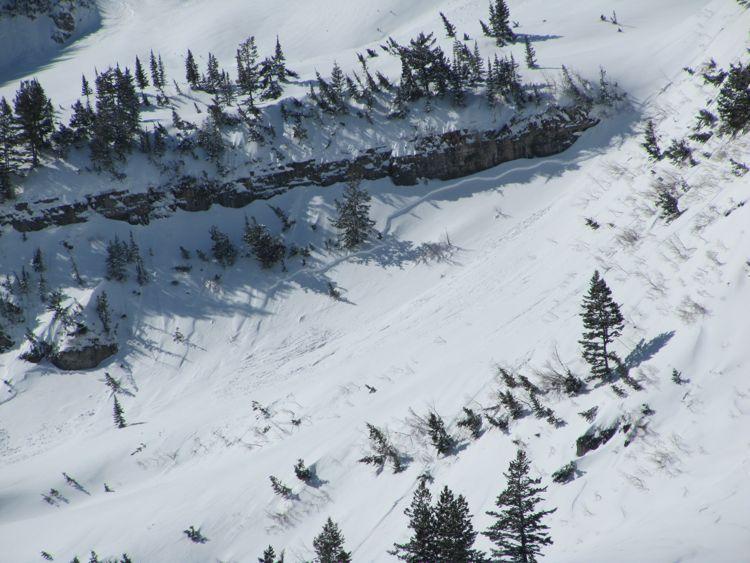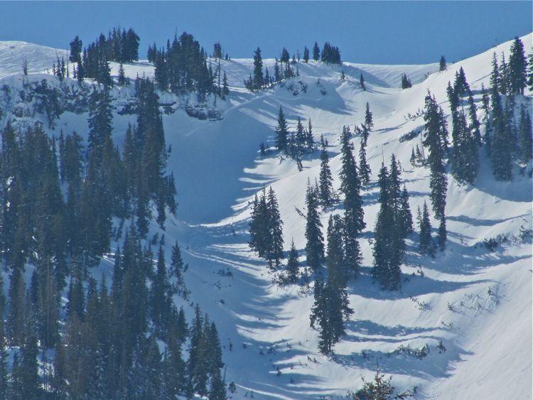 There was also a widespread natural cycle within the new snow which was about a foot deep. These were mostly class 2's but some of the piles of debris I wouldn't have wanted to tangle with. The new snow had stabilized by the time we were there.
