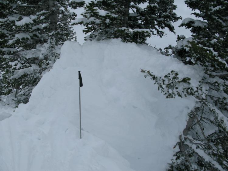 Unlike most hard slab avalanches, rather than shattering like a pane of glass, the raincrust allows the snow to remain intact as one cohesive piece of snow. It finally breaks up as it slams into trees, piling up huge amounts of bone crushing debris.