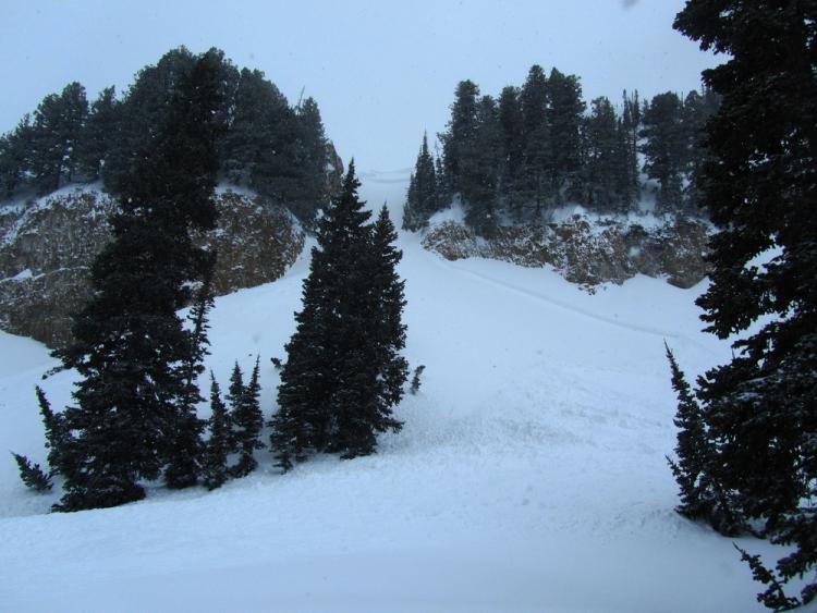 As it traveled through the chute, it propagated another 50' or so below a cliff band.