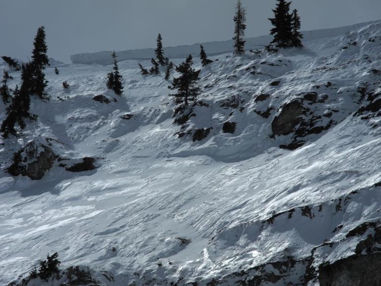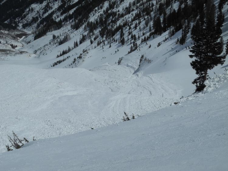 Heard about this avalanche from the Sundance Ski Patrol on Monday, April 11th. It's likely that it ran sometime during the storm on either 4/9 or early morning 4/10 from a natural cornice drop. HS-N-R3-D4-O running on facets above the upper layer of the MLK crust from 1/16. Crown was 6'+ deep in places. A second rain crust still exists below the bed surface with 122cm of snow remaining to the ground. This is another repeater that has avalanched 3 times already this season.