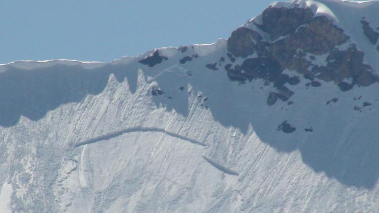 Also observed dozens of other point releases like the photos below. I was impressed with the amount of debris created by these slides. Individual roller balls coming off of the upper ridgelines were able to entrain enormous amounts of snow, often running 1000' or more vertical feet. Also heard some rockfall on southerly aspects.