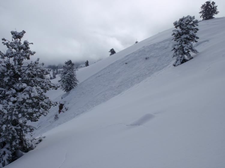 The last two photos show natural slides on easterly facing slopes in unskied/unopened terrain. These occurred sometime between 1600 on 1/19 and 0800 on 1/20. Crowns were 1-3', sliding layer was low density snow from 1/18. Largest slide was approximately 600'x1200'.