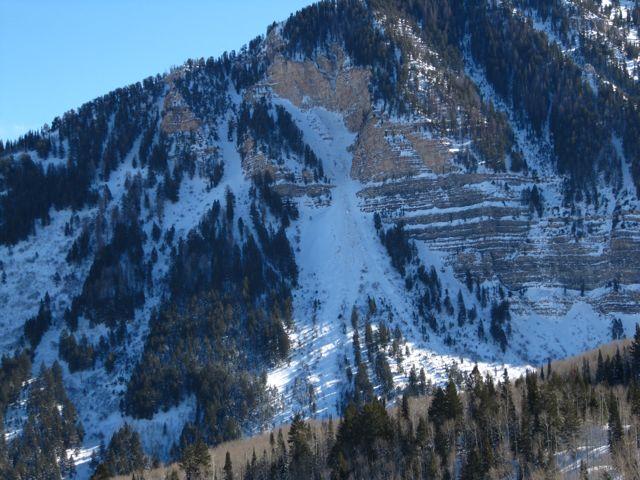 Numerous avalanches were visible on the west facing terrain of the Giant Stair Case from the backside of the UFO Bowls (pic below) up to the northwest face of Roberts Horn. If you look close you can make out crowns in some of the chutes.