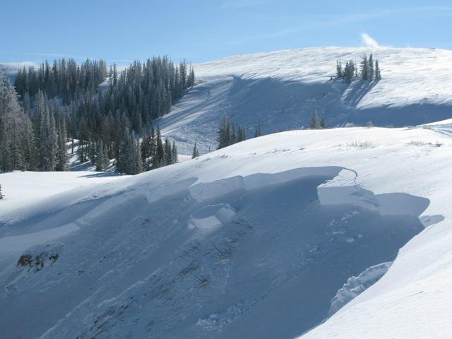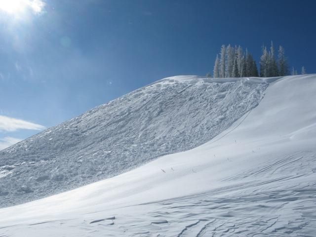 This slide was remotely triggered from a road cut at the bottom of the slope. Again.... close call but all were OK.