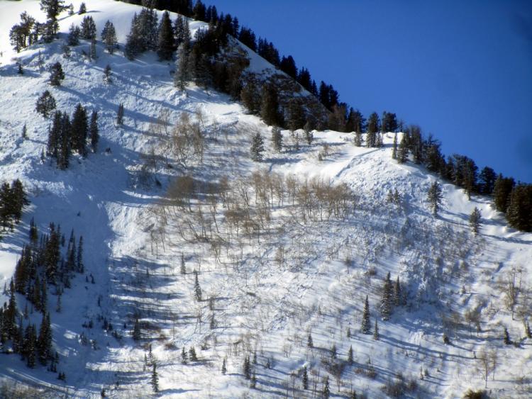 A couple more avalanches to add to the list that Brett is cataloging in the Timpanogos area. This one is in the Grunge Couloir. You can just pick out crowns high in the Grunge under the upper cliff and also off to the right in the North Face of Timp.