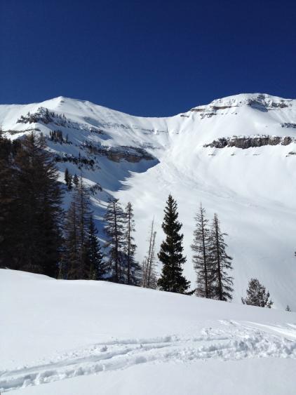 Two slides noted here. One at 10800' north facing, the other 9800' northeast facing (which looked as if it pulled into depth hoar.) -