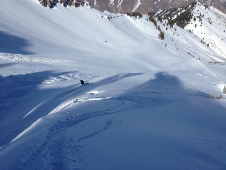 4th photo looked as if it ran early in the 'wind storm'. Up to 2' deep. Bunnels headwall. North facing 10900'