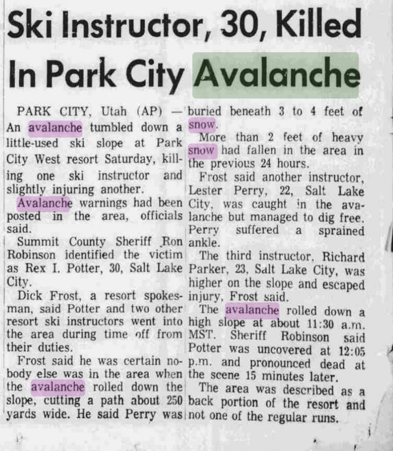 Below is a narrative of the accident from The Snowy Torrents; Avalanche Accidents in the United States 1972-1979, Knox Williams and Betsy Armstrong.