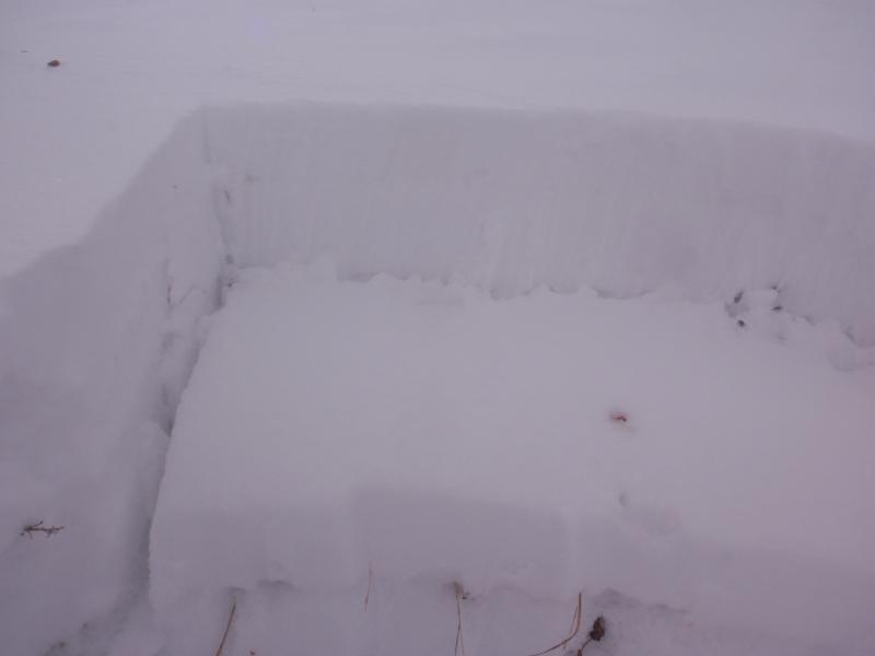 There was a thin melt freeze crust between the old and new snow. As you can see in the below photo, was a Q1 on the melt freeze crust.
