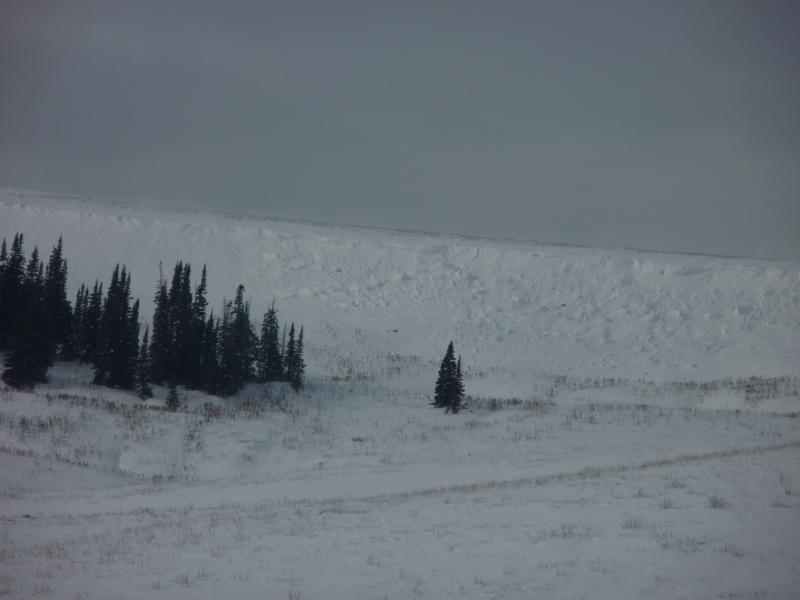 Wind blowing around 25 out of the East, not loading from the South as is normal for this cornice. Snow pit in the area and same aspect had 10 inches of new wind packed powder, over 10 inches of loose faceted snow over the 4 inches of October snow which was frozen hard. The first ECT broke at the at the faceted layer when the back cut was finished, the second an ECT 6 at ground level.