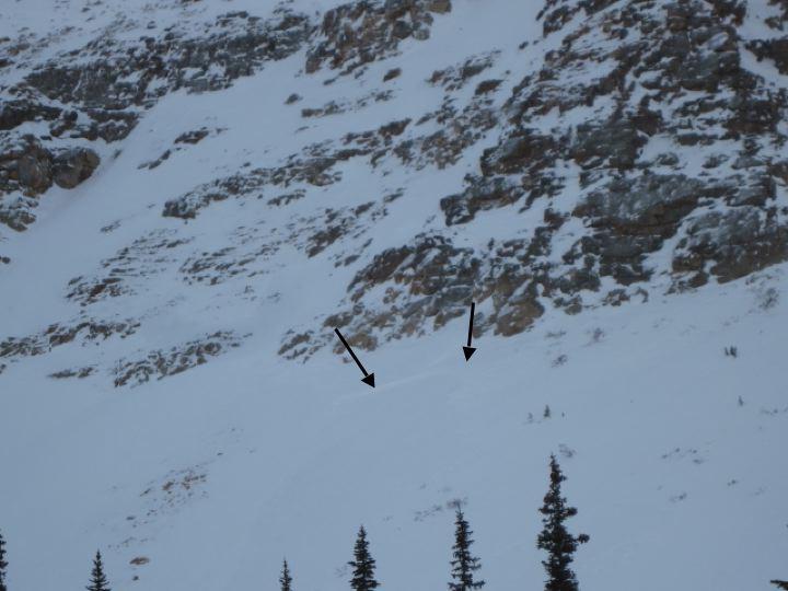 Sorry for the poor quality photo. It looks like this avalanche started from a piece of snow from the ridge line that came down and triggered this slide. I could not tell if it broke into old snow?