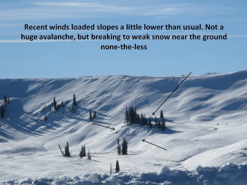 Strong winds on Tuesday resulted in a few pockety slides in the wind zone. Nothing super connected... common theme is weak snow that burdens the region.