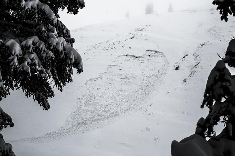 We came across this natural avalanche that had occurred during the day on sunday, on an east facing slope off of Shingle Mill flat in the Smith and Morehouse area. All of the starting zones on this slope were intact, while the mid-slope break overs had reached their threshold.