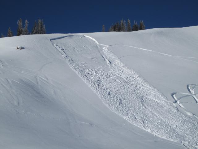 This small sled triggered slide looked to have happened yesterday. This is similar aspect and snow pack set-up as the bigger two slides futher on the same ridgeline.