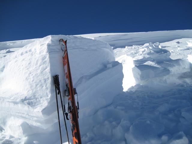 2. It was interesting to see how the slide pulled onto fairly low angle terrain, here at the crown I measured the slope angle in the low thirties.