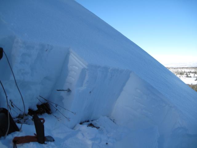 The right combination of strong snow over weak snow with a nice 4F plus slab resting on top of weak faceted snow about mid-pack. Once the rider found a thin weak spot on the slope and collapsed the weak layer was all it took.