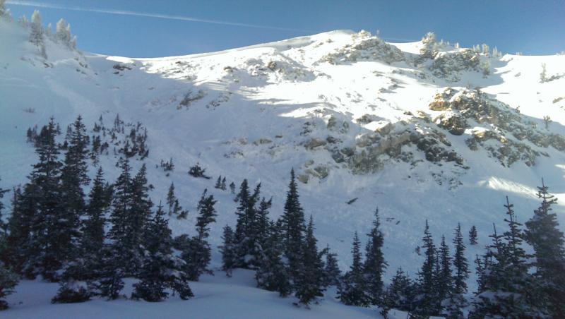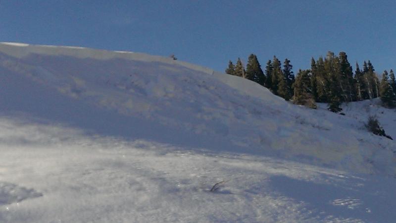 Around 2PM a snowmobiler triggered a fairly large avalanche that he and the three riders below managed to escape.  In the first picture of the bigger slide, a snowmobiler was side-hilling at mid elevation on a hill.  On the left side of the slide you can see his tracks coming out of it.  He caused a lower slab to go which started small but then the lower slab caused all of the upper to go including the cornice.  We observed other large bowls with no snowmobile tracks in or out that had gone. This was only one of multiple avalanches we either triggered or observed. The 2nd and 3rd picture is an avalanche that ww triggered remotely from our snowmobiles. We were riding around 40 yards from where the slide actually occurred.  That one slid down to the weeds and covered the trail we had just ridden in on with about 7ft of snow.  Some occurred naturally and others from snowmobiles.  Both obvious and non obvious hills were sliding down to the dirt. In both cases I think the wind was a major factor in that the cornices were huge and the wind had blown large amounts of unstable snow below those cornices.  I believe that the first picture of the bigger slide is the tallest peak in that range so I'm guessing around 10k ft. In all cases we observed the slides went from the ridgeline all the way down.