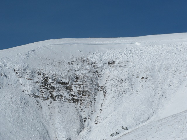 Very large avalanche in LMF Bowl. 5' deep, 1/2 mile wide, running 1200' vertically.